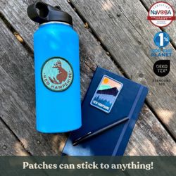 Custom embroidered heat seal patches that give people a way to represent an image/logo on their clothing, bag, water bottle, hat, etc. Embroidered with thread made of 100% recycled post-consumer plastic.